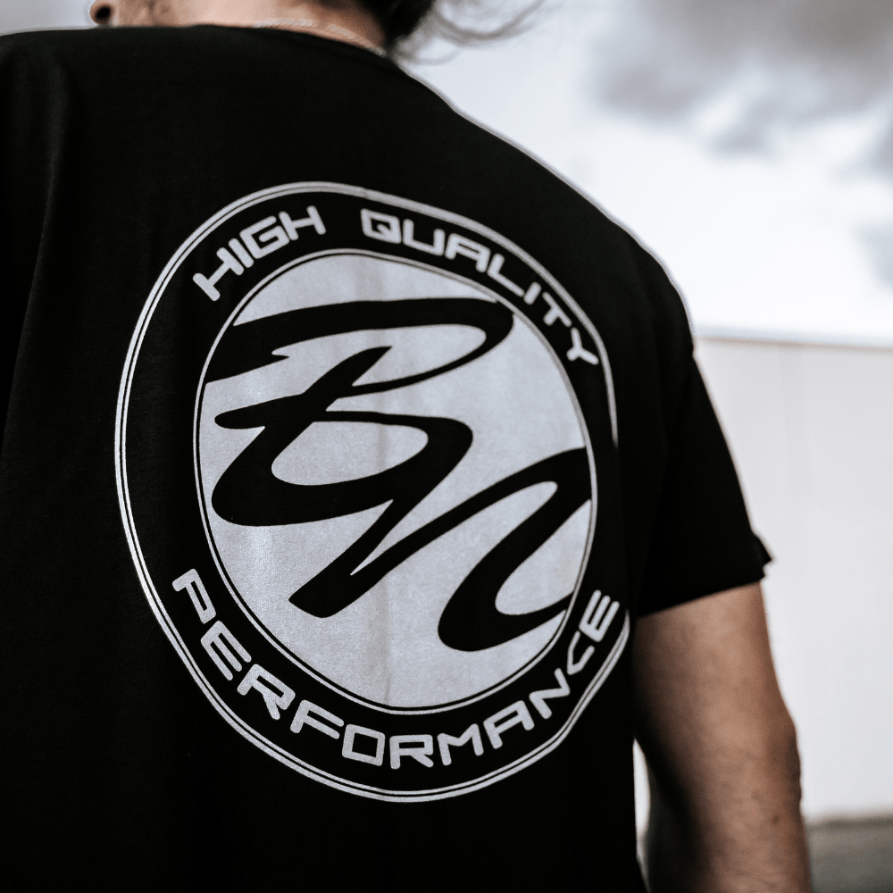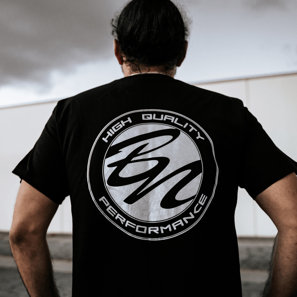 Own a piece of BN Sports heritage in stealth black. This premium tee pairs track-day attitude with street-ready comfort, finished in a mirror-like metallic-silver logo hit that shimmers under any light.